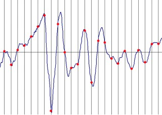 Jako první se rozdělíme rovnoměrné úseky dle vodorovné osy. Dle frekvence poté získáváme pravidelné diskrétní body (čím větší frekvence tím přesnější je výsledek).