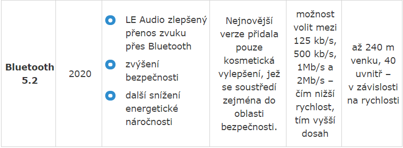Poslední verze Bluetooth 5.2